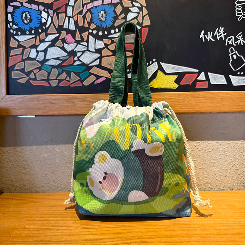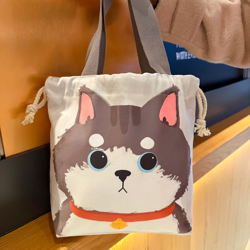 义乌好货 可爱小狗束口袋2025新款大容量水桶包抽绳饭盒包便携布袋一件代发