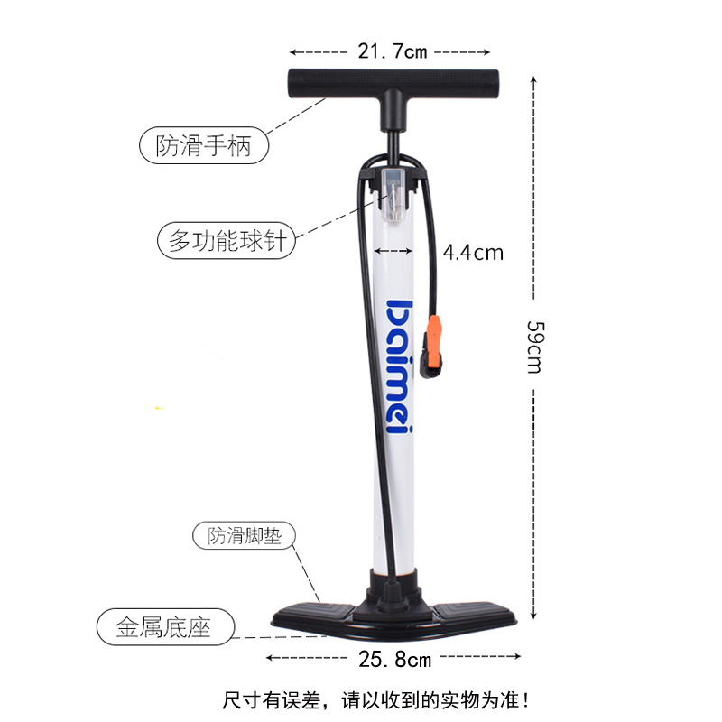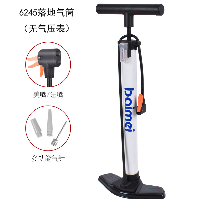 6245落地气筒(无表,铁板底,10pcs,11kg,74*40*27=0.08,Φ4.5*H60cm,160psi,含1球针+2气针,黑/白,彩卡包装,无缝钢管);