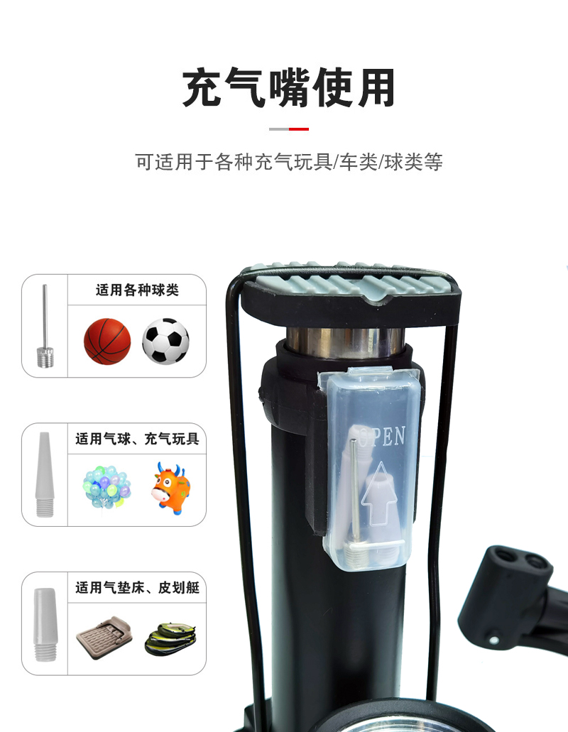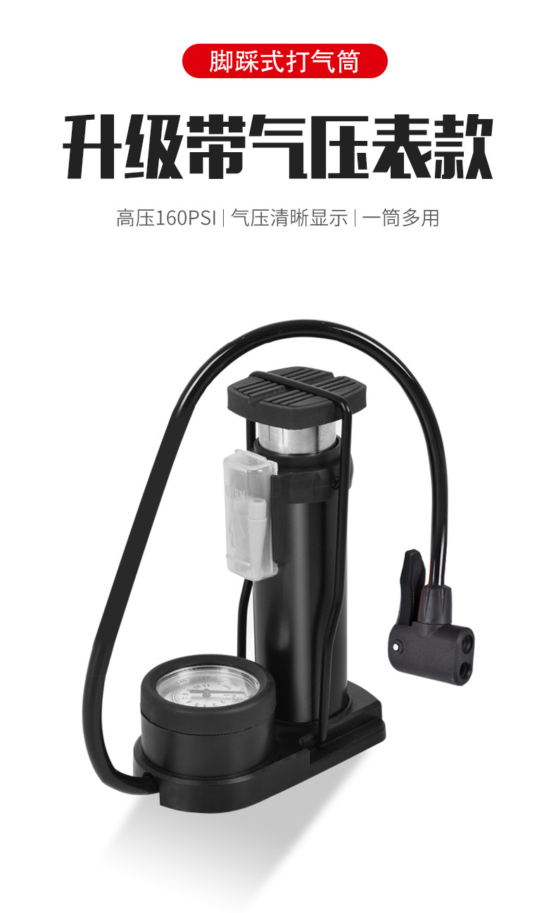 4518B脚踩气筒(铝管,带表, 50pcs,18KG,61*43*39=0.01,含1球针+2气针,彩盒, 85psi);