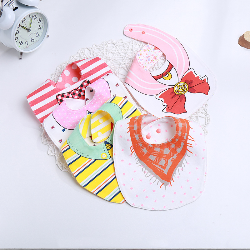 新款可爱卡通双面宝宝防水围嘴口水巾全棉 儿童饭兜围兜婴儿围嘴