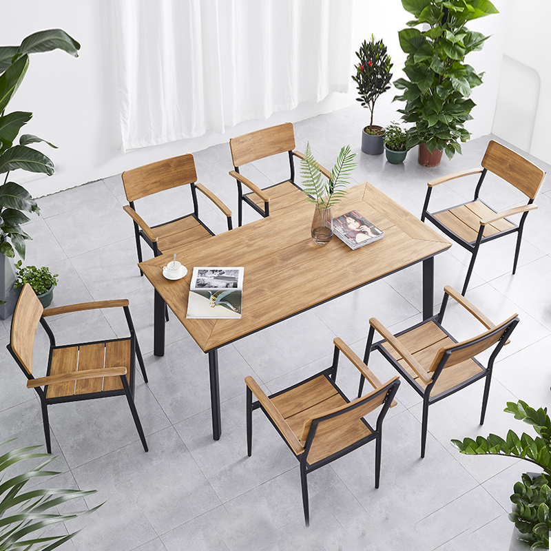 户外休闲桌椅庭院塑木餐桌座椅北欧现代简约室外露天阳台桌椅组合