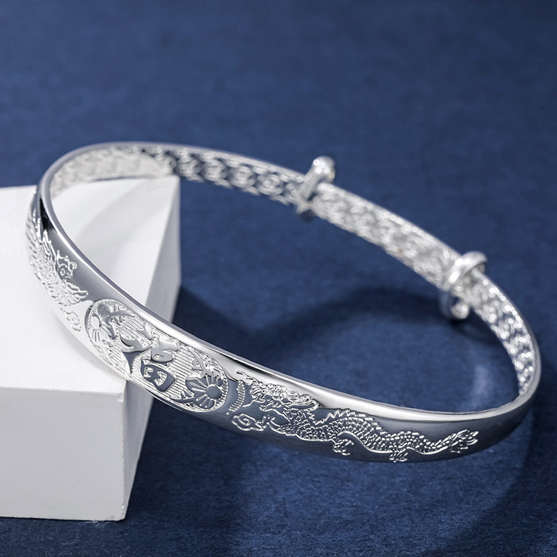 旭平首饰推拉光面龙凤手镯女铜镀银镯子高级感母亲节礼物送妈妈