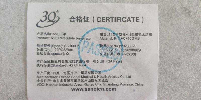 三奇杯状N95口罩 数量:20个/盒
