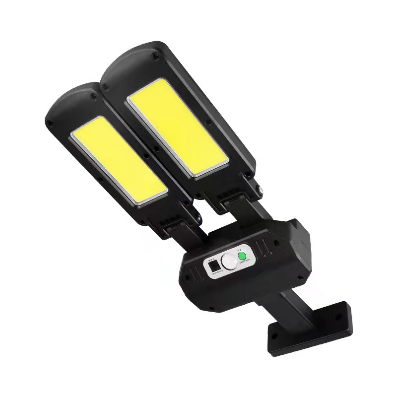 产品概况:太阳能双面路灯 颜色:黑色 重量:500g 供电:2*1200毫安 产品尺寸:36*13.6cm 彩盒尺寸:31*15.5*5.2cm 箱规:63.5*42.5*47.5cm 净重:24KG 毛重;25KG 装箱数量:48/PCS 过充:4.2V 过放:2.8V 太阳能板:5.5V 120毫安 模式1:晚上人来灯亮,人走后20秒自动熄灭 模式2:晚上微亮20%,人来灯亮100%,人走后20秒微亮20% 模式3:晚上自动20%常亮