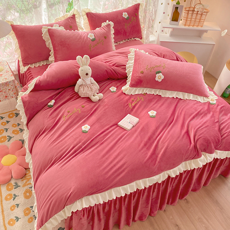 花朵-红豆沙:1.8m床裙款四件套