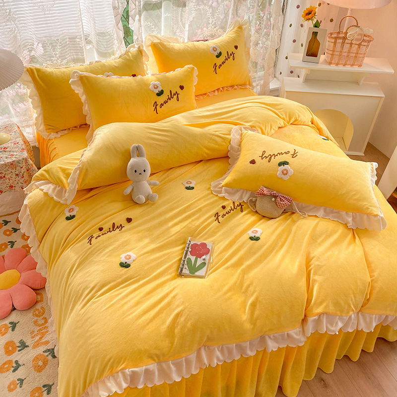 花朵-亮黄:1.5m床裙款四件套