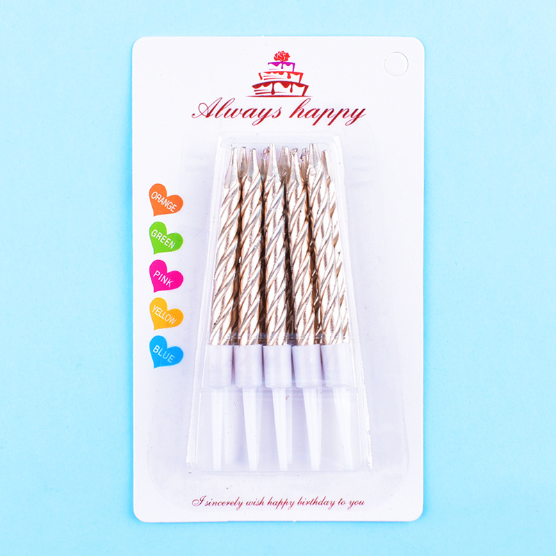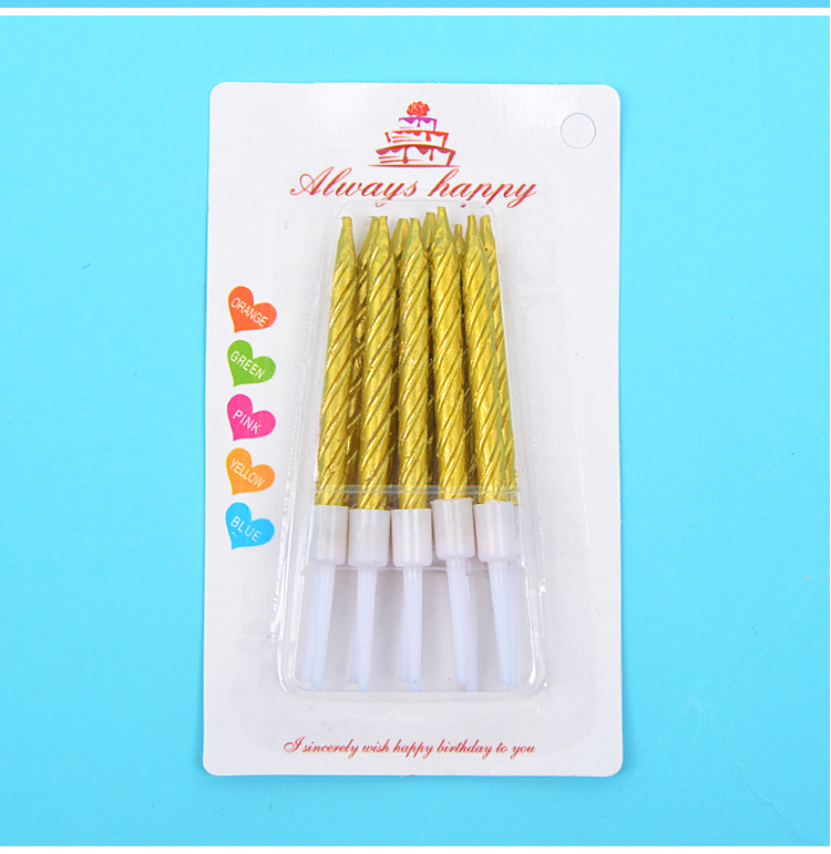 批发镀金生日蜡烛金色银色螺纹蜡烛生日蛋糕装饰烘培工艺蜡烛10支