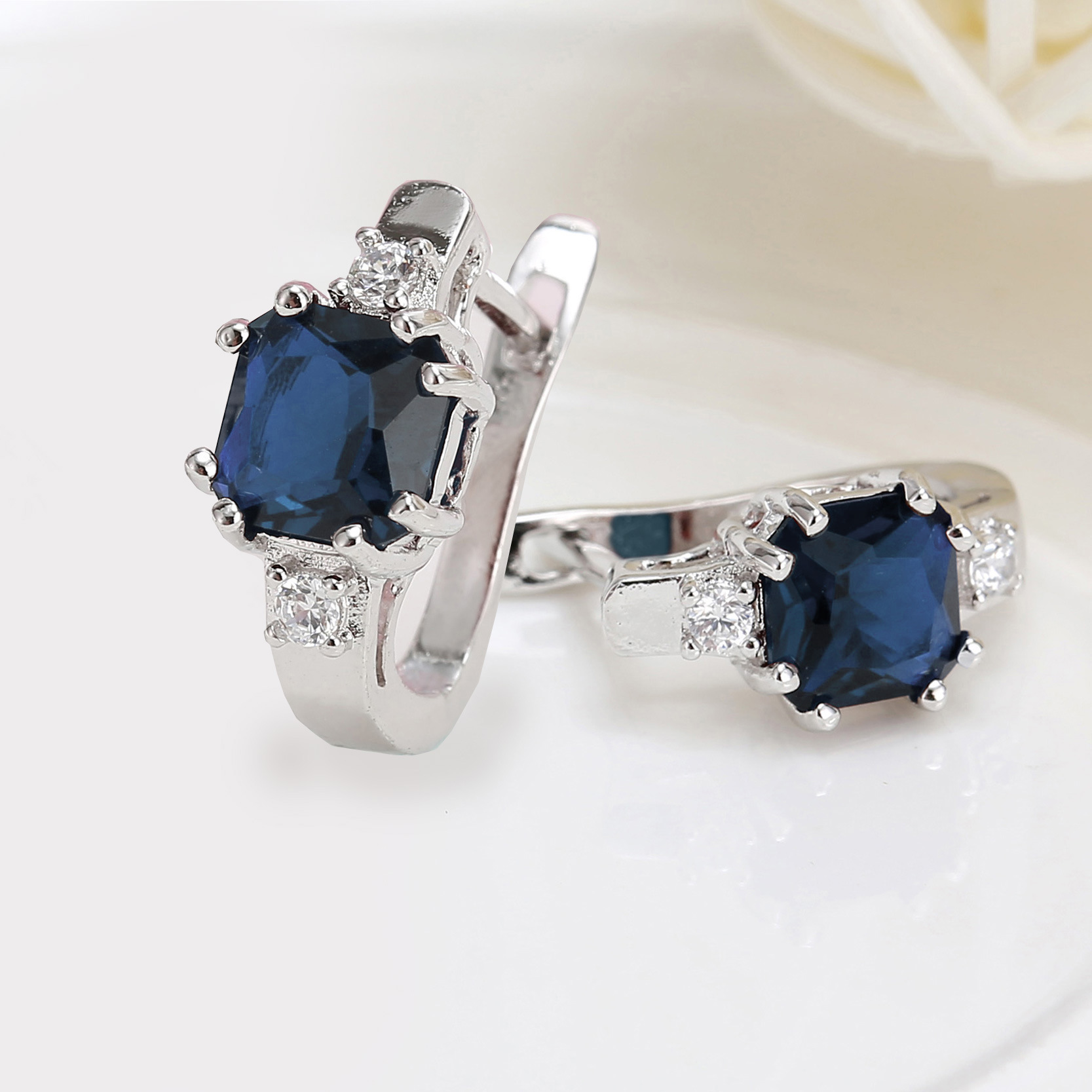 方形蓝色耳扣 B2019
