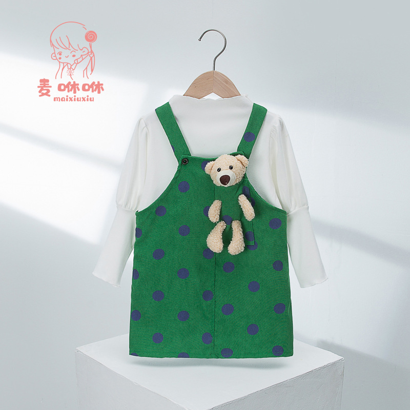 麦咻咻2022秋冬儿童背带裤新款宝宝小熊灯芯绒女童公主裙两件套