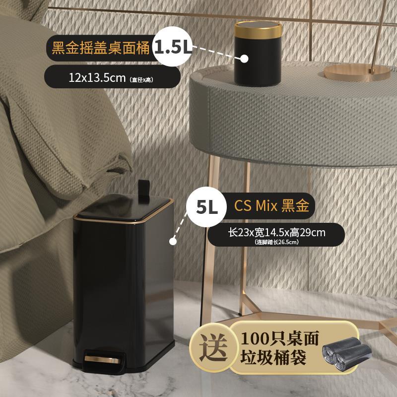 【卧室简奢套装2】1.5L翻盖桌面 桶 黑金+5L cs mi