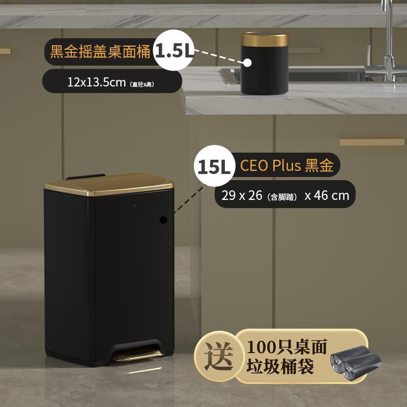 【厨房轻奢套装2】1.5L翻盖桌面 桶 黑金+12L CEO