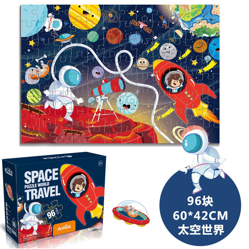 96片系列彩盒尺寸25.5*9*19.5cm,拼图尺寸60*42cm,单盒净重600g左右。1箱装24盒