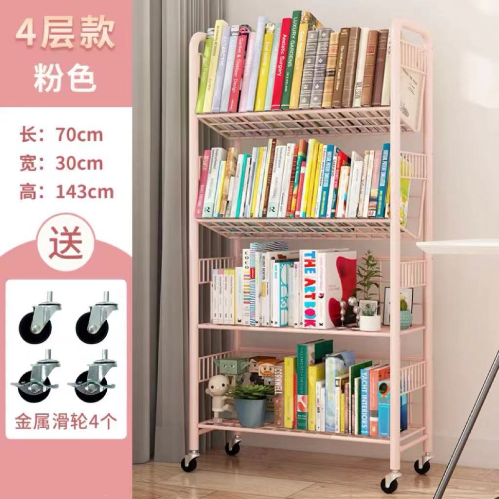 推车书架粉色四层