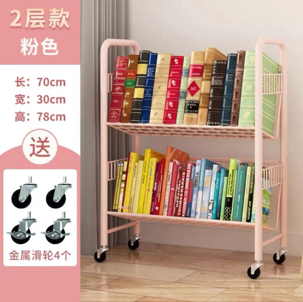 推车书架粉色二层