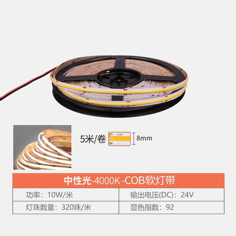 320珠/24VCOB灯带-8mm宽4000K中性光
