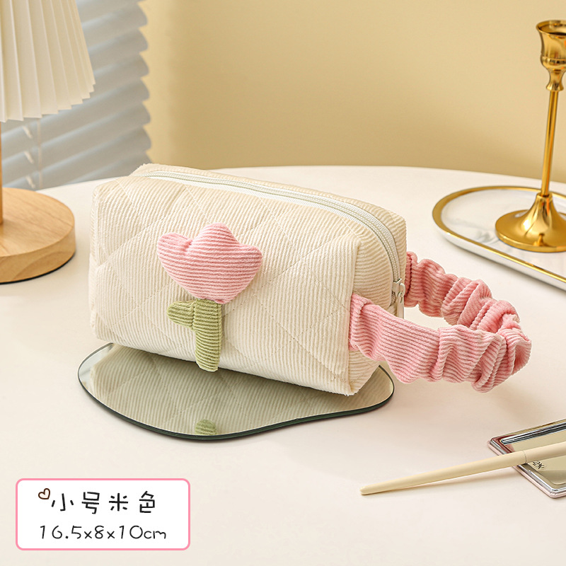 跨境灯芯绒化妆包 ins郁金香大容量化妆盒便携洗漱包高颜值收纳包