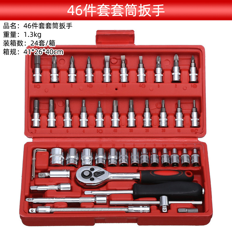 品名:46件套套筒扳手重量:1.3kg装箱数:24套/箱箱规:41*26*40cm
