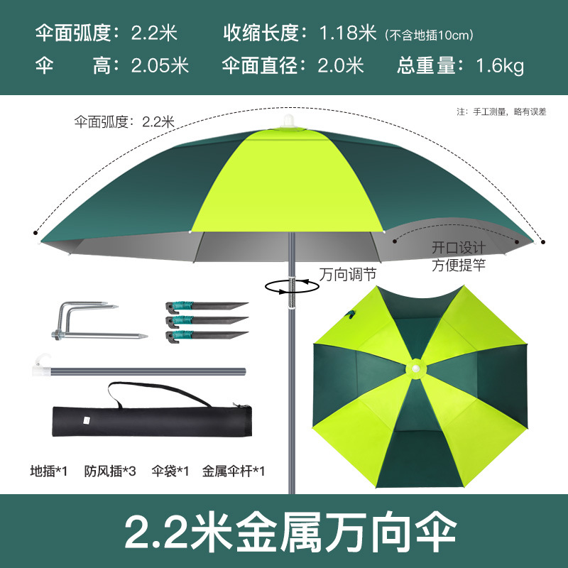 2.2米金属杆单层银胶万向(拼绿色