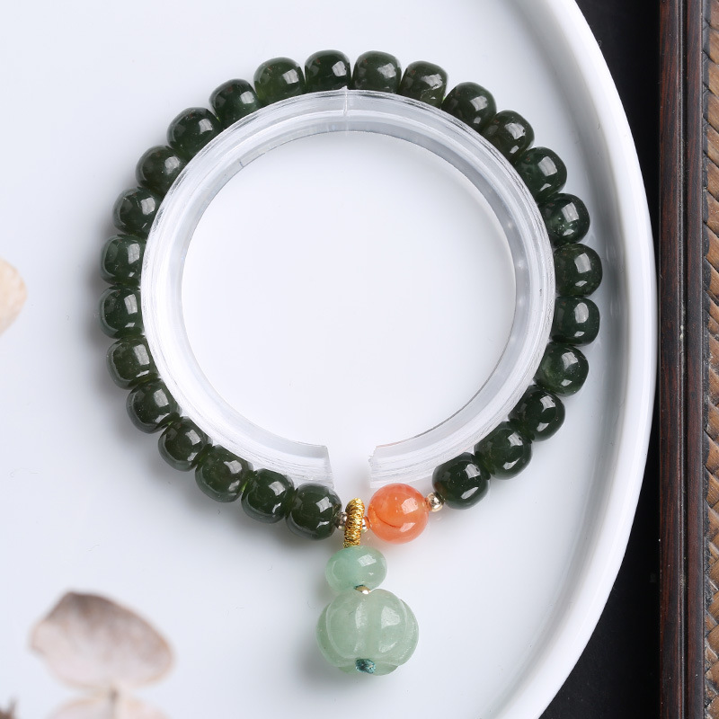 6*7深色和田玉桶珠手链吊南瓜