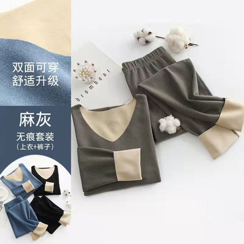 无痕德绒羊毛蚕丝保暖内衣套装女士冬季加绒加厚秋衣秋裤男士打底