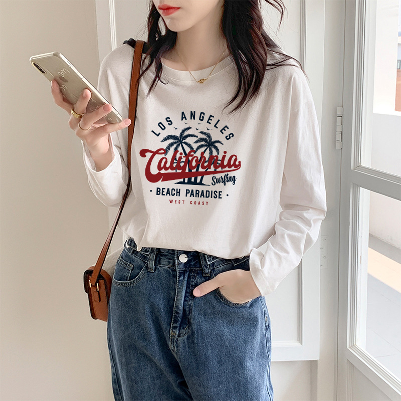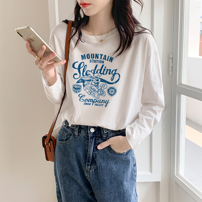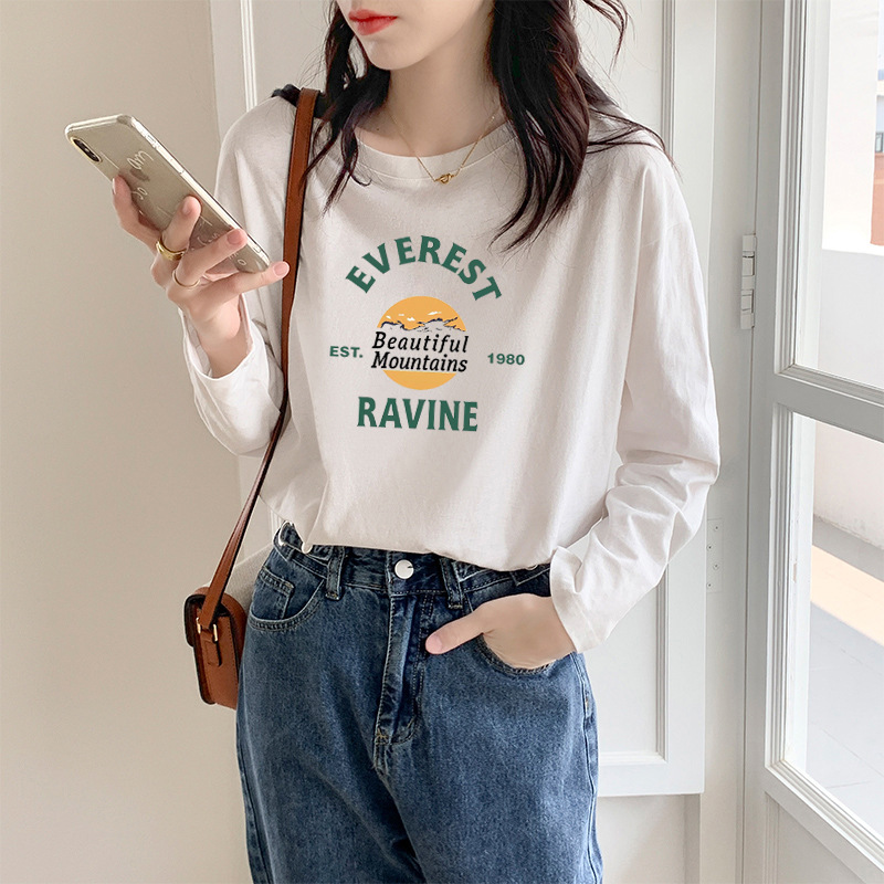 代发供货 加厚精梳纯棉春秋装女装长袖T恤印花内百搭上衣打底衫