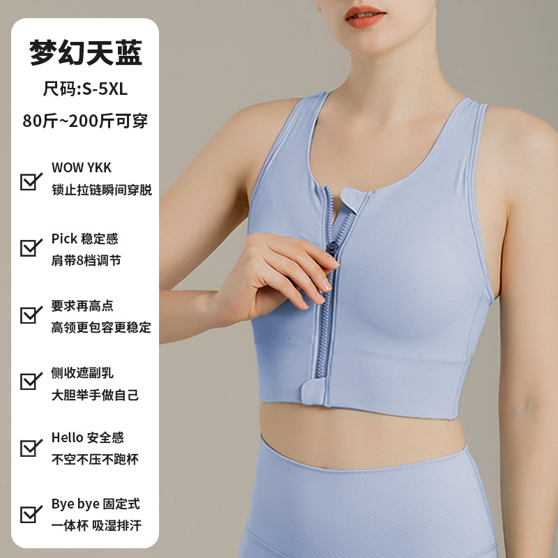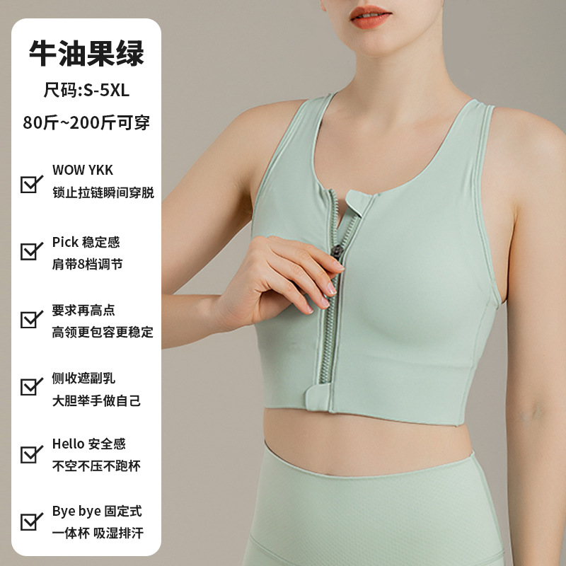 大码运动内衣女防震健身跑步瑜伽一片式前拉链肩带可调节文胸批发