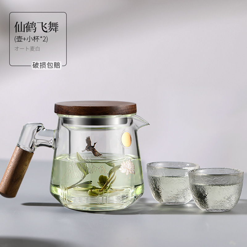 仙鹤飞舞壶-透明+木垫