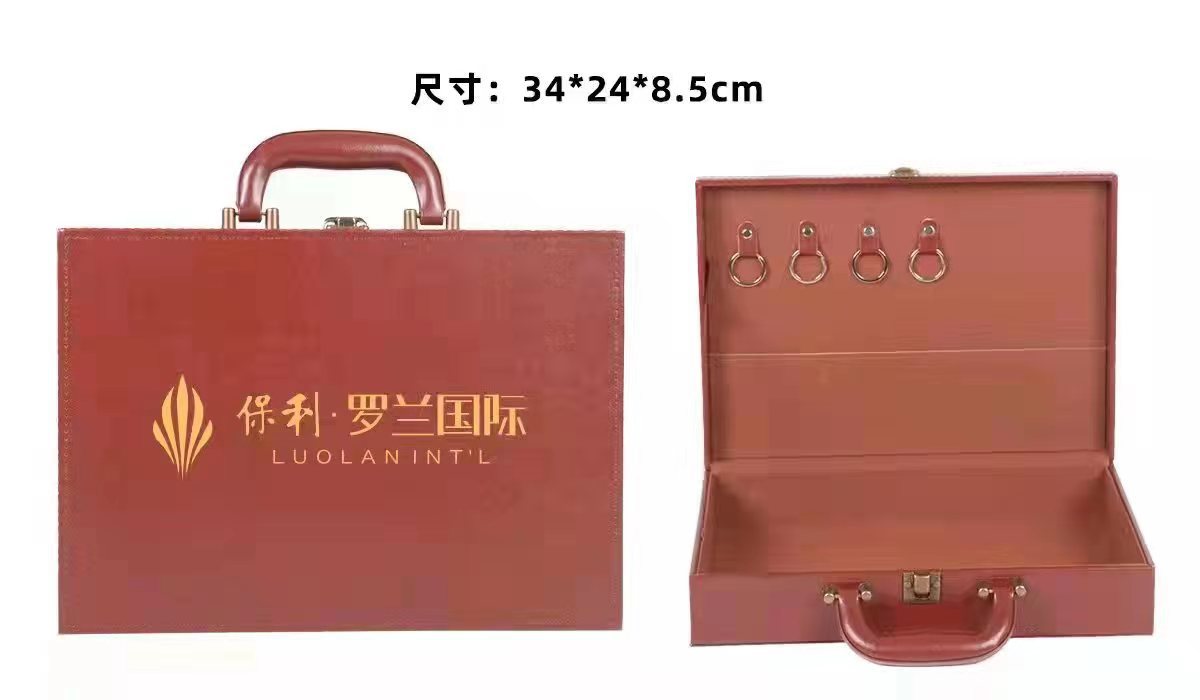 现货交房箱 高档皮革手提房地产楼盘交付钥匙盒 礼品保单皮盒定制
