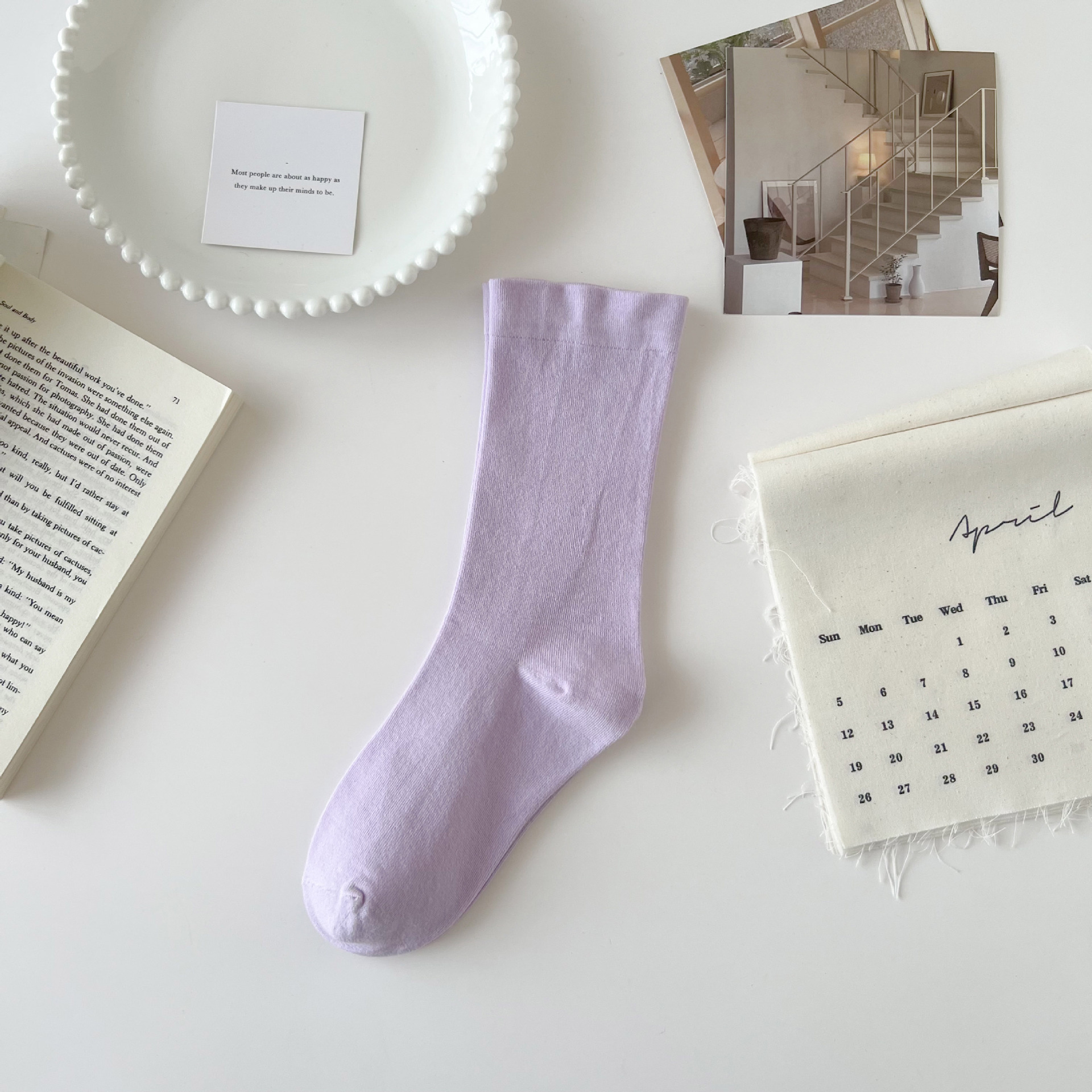 夏天女生袜子无骨堆堆月子袜日系马卡龙色松口春夏薄款简约中筒袜