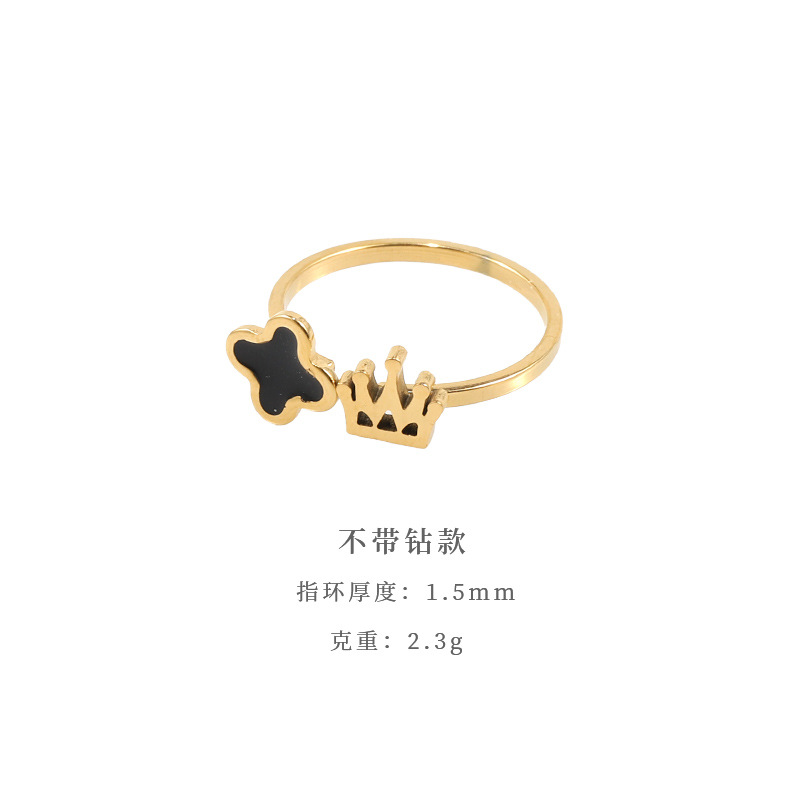 钛钢戒指女开口小众个性指环锆石简约ins风高级轻奢饰品四叶草
