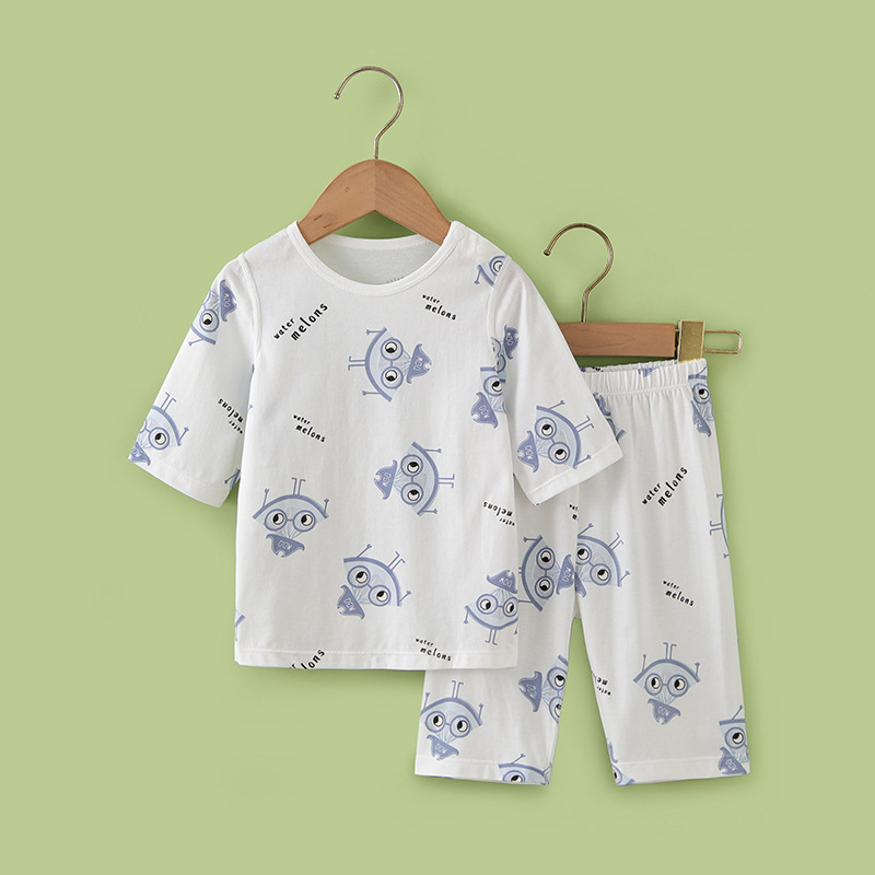 夏装新款套装七分袖圆领套头套装印花婴幼儿套装家居服宝宝空调服