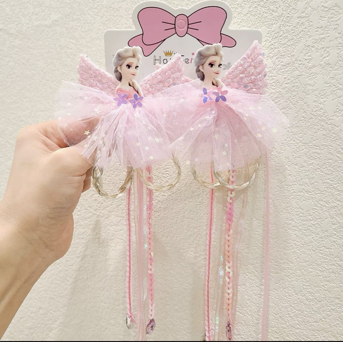 淡粉色辫子对夹