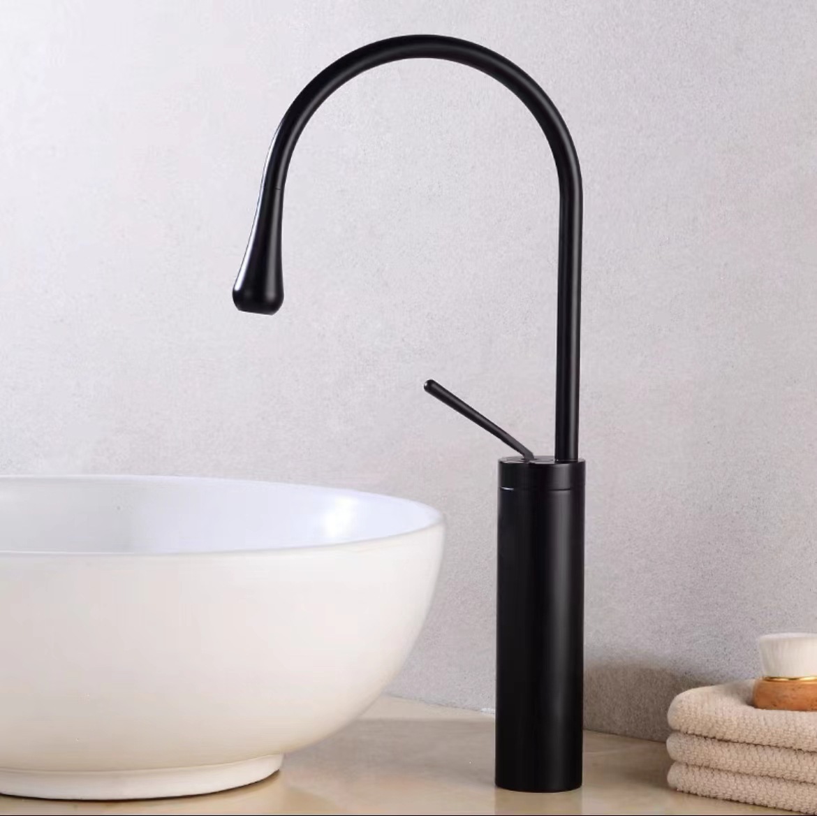 黑色高款水滴面盆龙头(赠进水管)