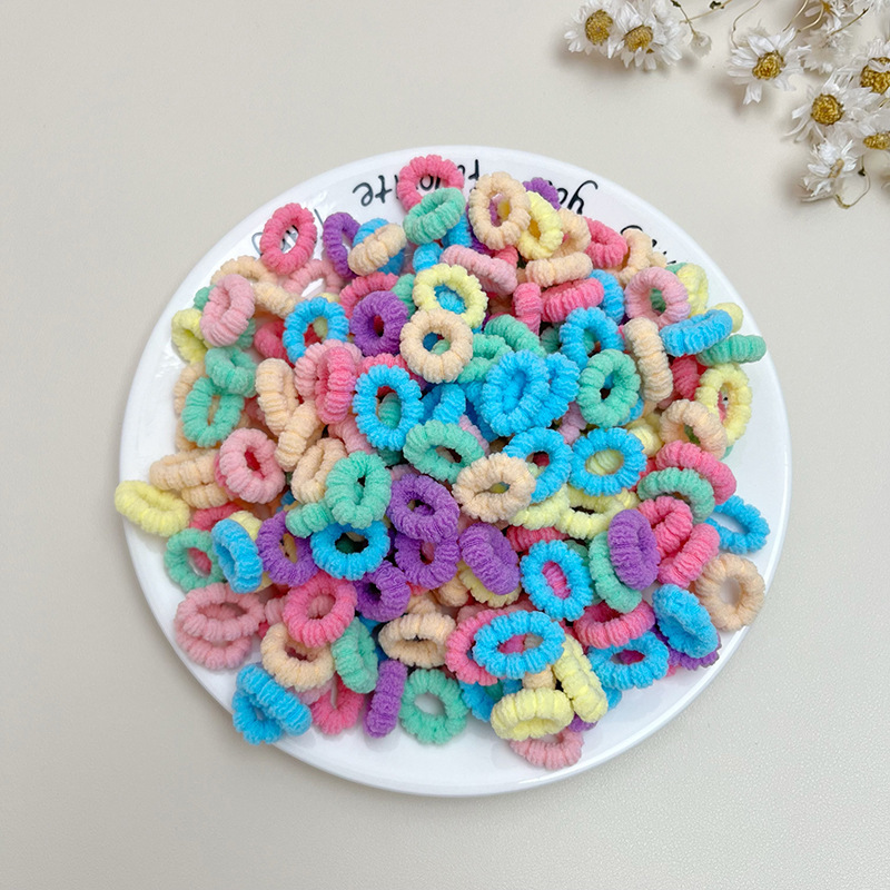 100根/袋儿童无接缝发圈高弹力不伤发毛巾圈女孩糖果色扎头发皮筋
