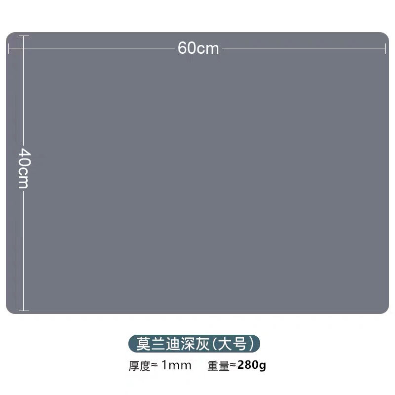 产品名称: 硅胶餐垫产品材质: 符合美国FDA严格检测。产品尺寸: 60*40 重量:280g产品颜色:莫兰迪绿 .莫兰迪粉,橙色 .黑色可按照潘通色卡号定制颜色。产品包装: opp塑料袋子单个产品耐热温度: 零下-40度,到+240度用途: 隔热垫 餐垫使用范围: 家居用品产品LOGO: 接受定制丝印或者模具压印LOGO。