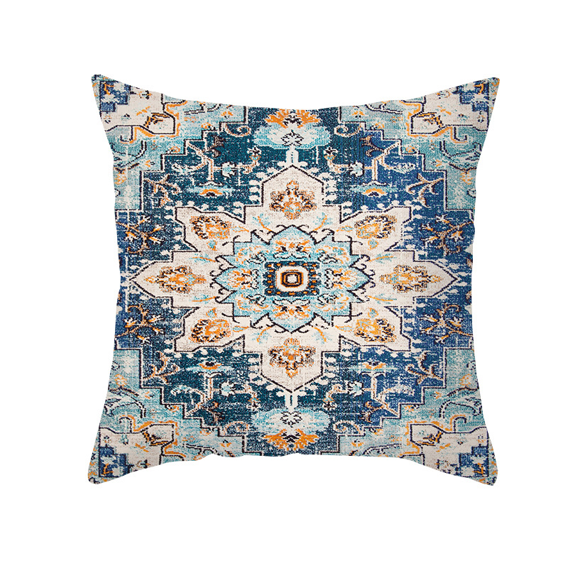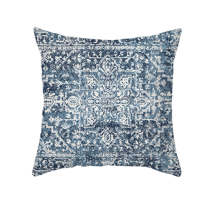 shopee跨境印花抱枕套黄蓝几何中世纪复古抽象抱枕居家沙发靠枕套