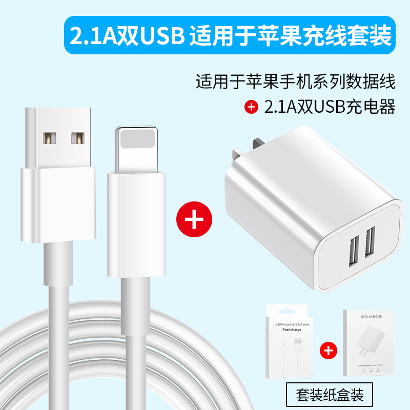 苹果USB数据线+2.1A双USB充头(盒装)