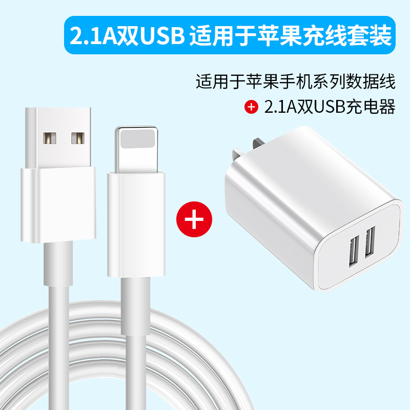 苹果USB数据线+2.1A双USB充头(袋装)