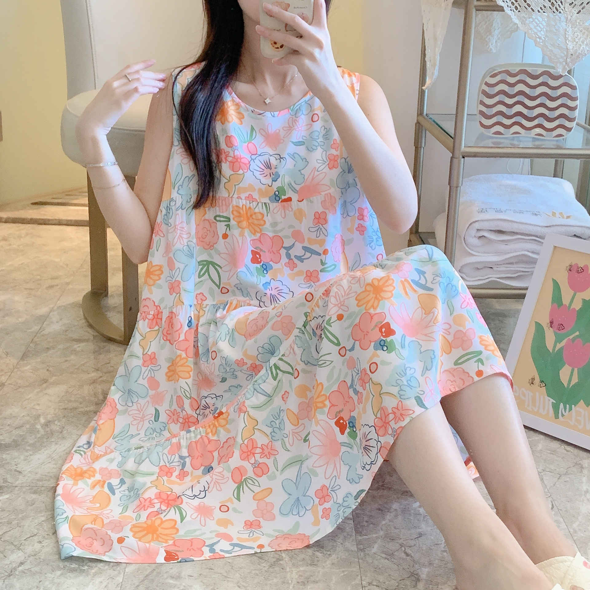 1697灰底橘花朵