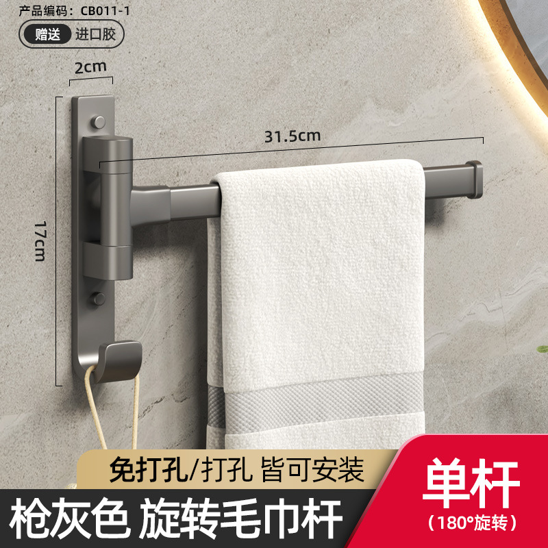 免钉:旋转毛巾架方管1杆—灰色