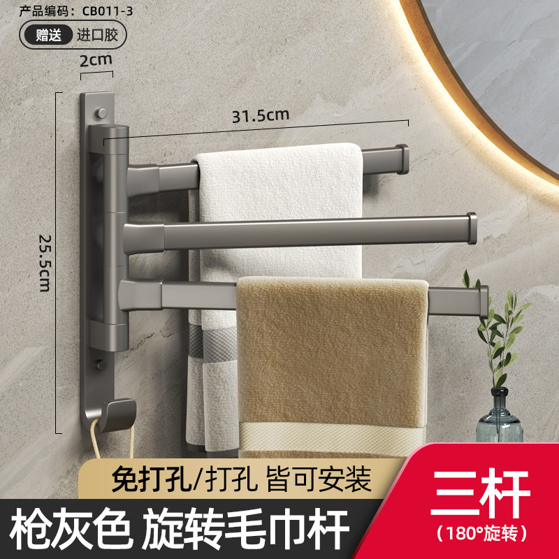 免钉:旋转毛巾架方管3杆—灰色