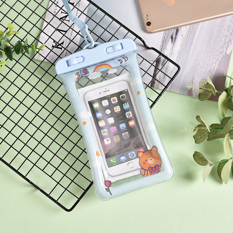 卡通气囊流沙手机防水袋漂流游泳密封触屏拍照幻彩TPU防水手机套