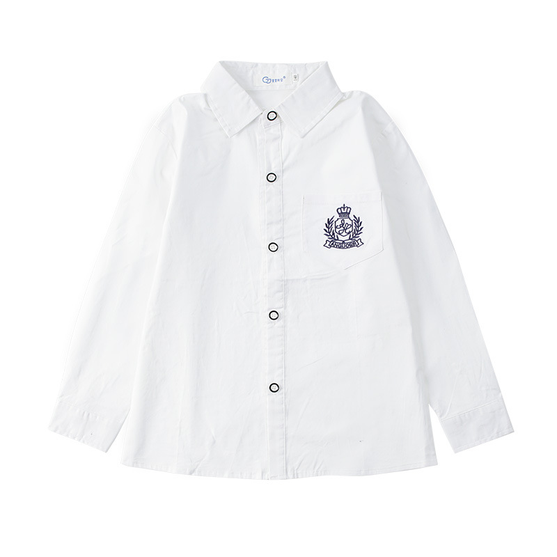 男刺绣白长袖衬衣