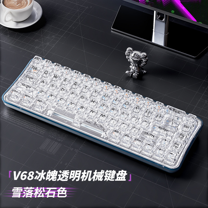 雪落松石色-水晶轴【透明键盘】-RBG灯效-三模连接
