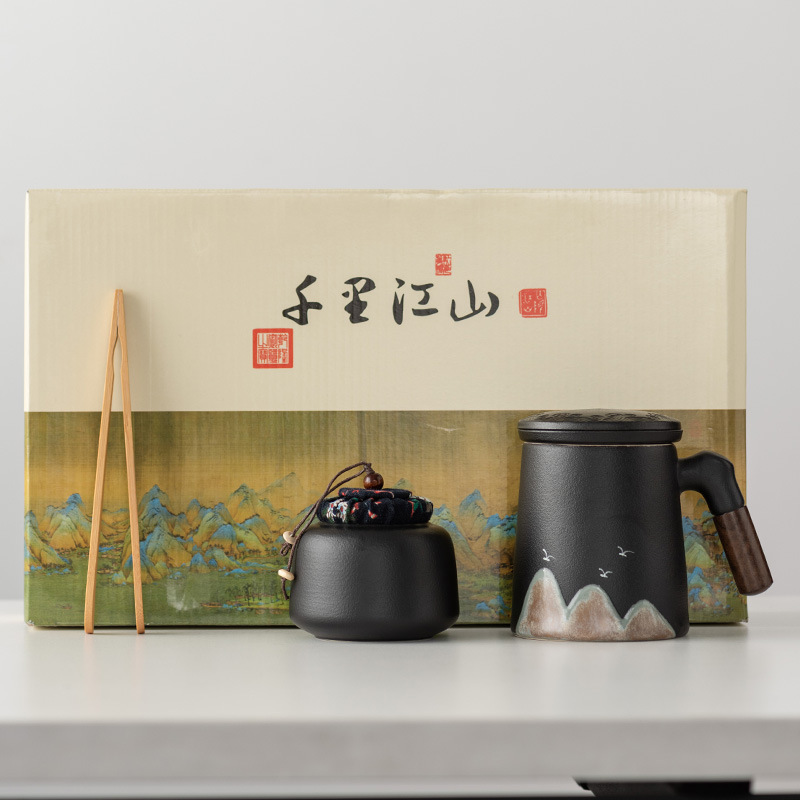 千里江山+罐/轻享水杯-黑