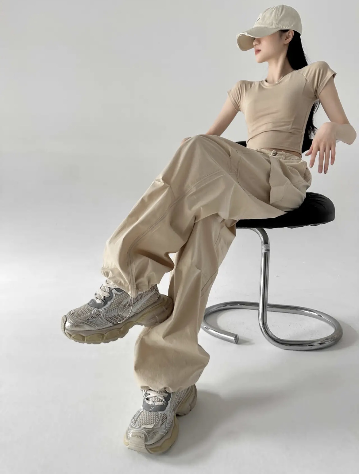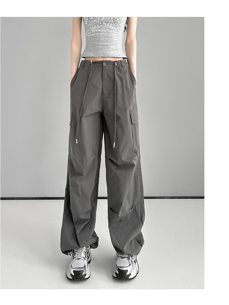 高街美式抽绳工装裤女2024夏季薄款宽松速干裤设计感二穿休闲裤子