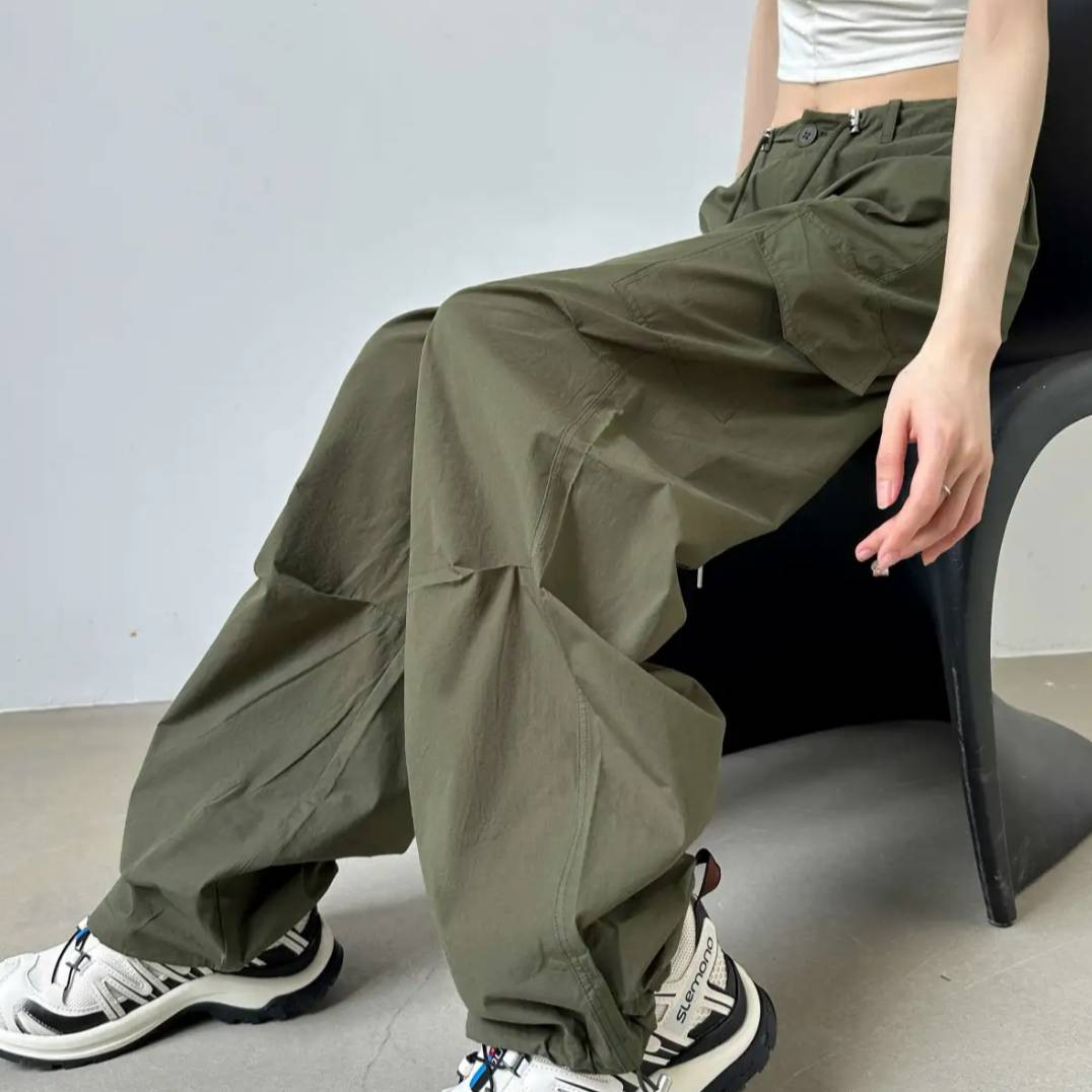 高街美式工装裤女2024夏季宽松显瘦薄款潮流高腰速干裤二穿阔腿裤
