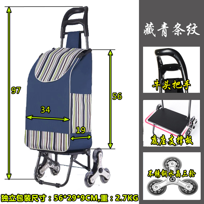 豪华款-牛头不锈钢三轮-藏青条纹