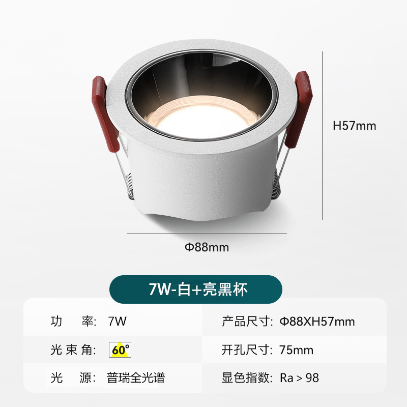 白+亮黑杯 7W筒灯 开孔75mm