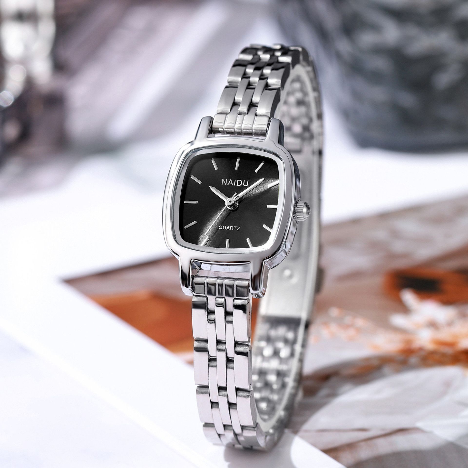 百搭钢带经典简约刻度学生考试,百搭手链手表漂亮的一款。